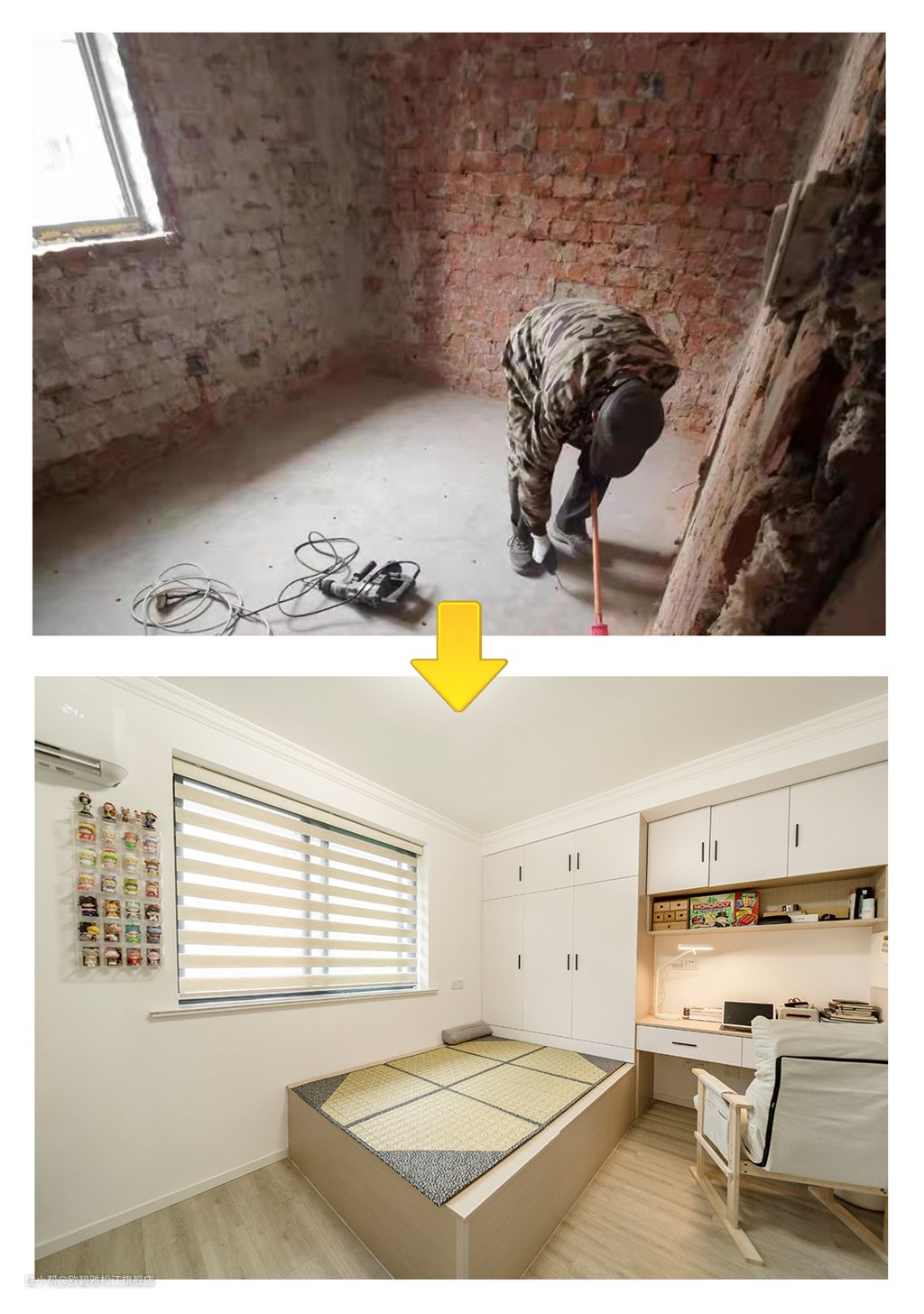 儿童房改造:对于小户型来说,空间收纳与空间布局同时重要,多功能儿童房可以满足平时休息、办公、收纳等多种需求。