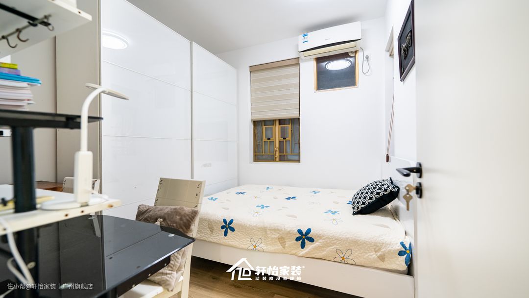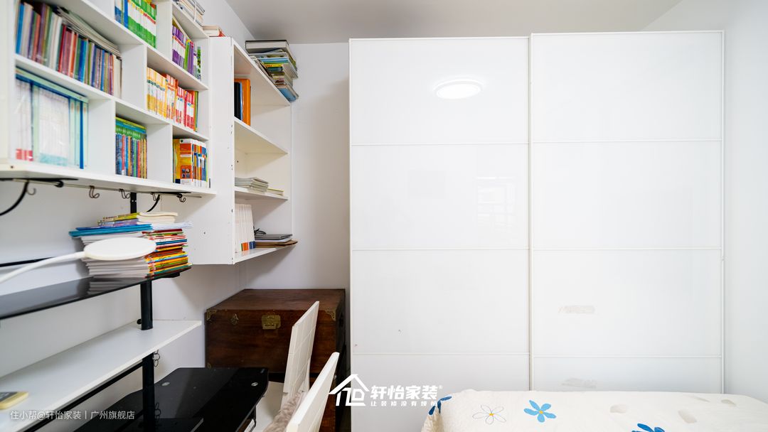 另一个次卧经过设计师改门后,作为客房和书房一体使用的多功能房间,使用更加便捷,闲时用作业主的办公区,有客人来访时还能作为客房给客人留宿用,真的一举两得呢。