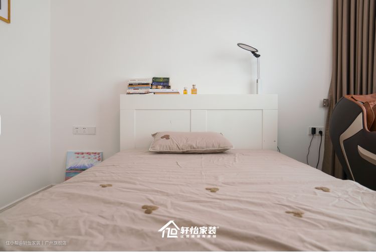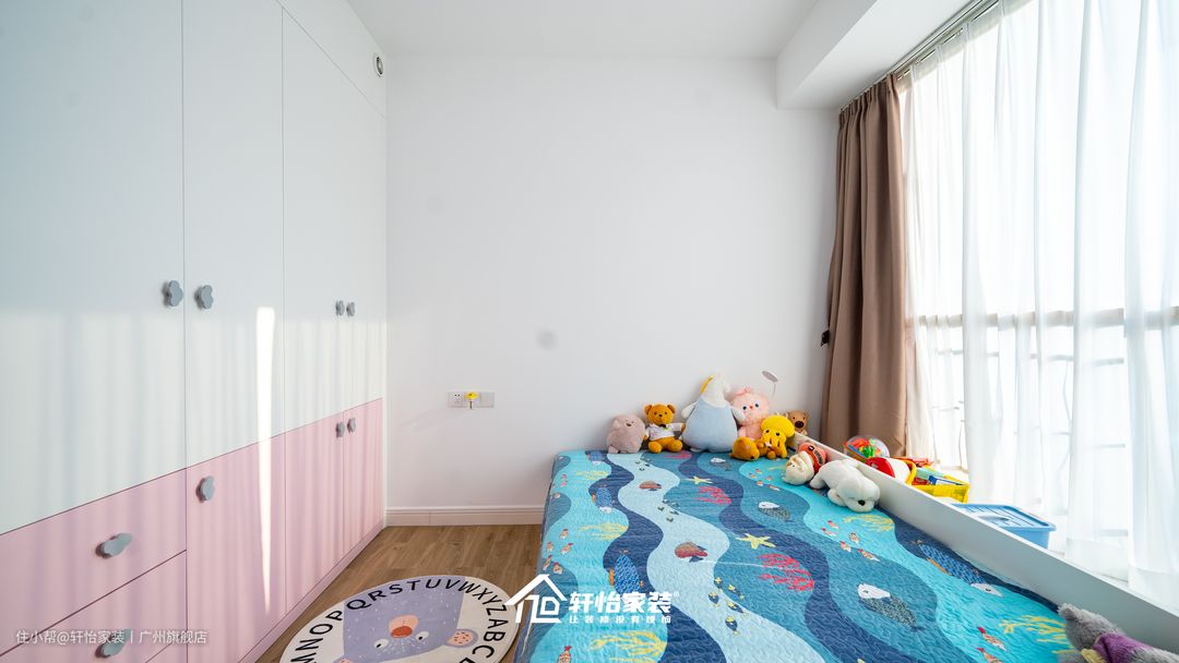 整屋的采光是十分和谐的,从主卧到儿童房,都是大飘窗设计,通风和通透性非常好,保留地台布局,实用与美观兼备。其次儿童床作为榻榻米设计,搭配动物图案床铺,为小朋友打造了一个童真满满的休息空间。