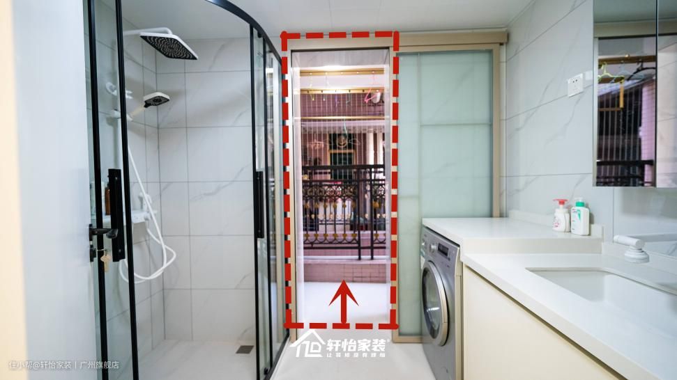 公卫进来,是集洗衣功能与卫浴空间于一体的多功能卫生间,采用基本的干湿分离设计,且经过设计师重开阳台门后,穿过公卫可到达阳台,让客房释放更多空间,让公卫更加合理利用。