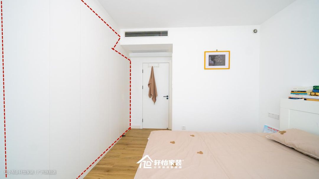 如果主卧的收纳功能仅限于榻榻米,那真的是不值一提,当然还有定制到顶衣柜收纳啦,整面墙做了嵌入式到顶衣柜设计,避免卫生死角问题,还让整墙保持简约大气的格调,非常适合主人房的气质,收纳与颜值都非常出圈。