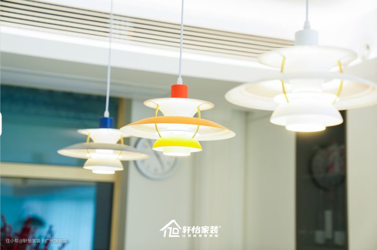 四人桌布局的餐厅,刚好满足日常用餐需求,搭配三盏吊灯,温馨氛围瞬间拉满。餐边柜+岛台的一体化设计,成了餐厅设计一大亮点。
