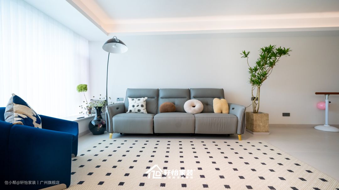 一个2M宽的大飘窗设计,让整个客厅空间的光线倍增,从入户到客厅,视觉效果得到有效扩容,肉眼可见的通透,简约气质瞬间充满整个客厅。