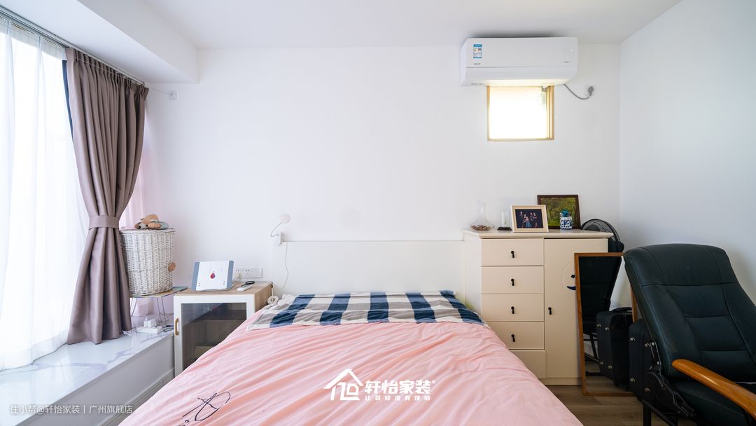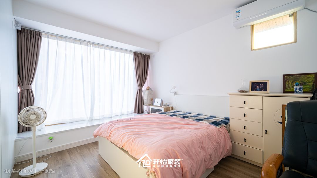 长辈房的通透和采光,得益于大飘窗的设计,保留地台设计,不仅能用作物件摆放,闲时休憩时间还能坐在上面享受窗外的风景,怎一个“爽”字了得! 除了大飘窗,长辈房在空调底下还保留了一个小天窗,采光效果再次加强,十分贴合长辈房的使用,避免昏暗环境下发生的安全问题。