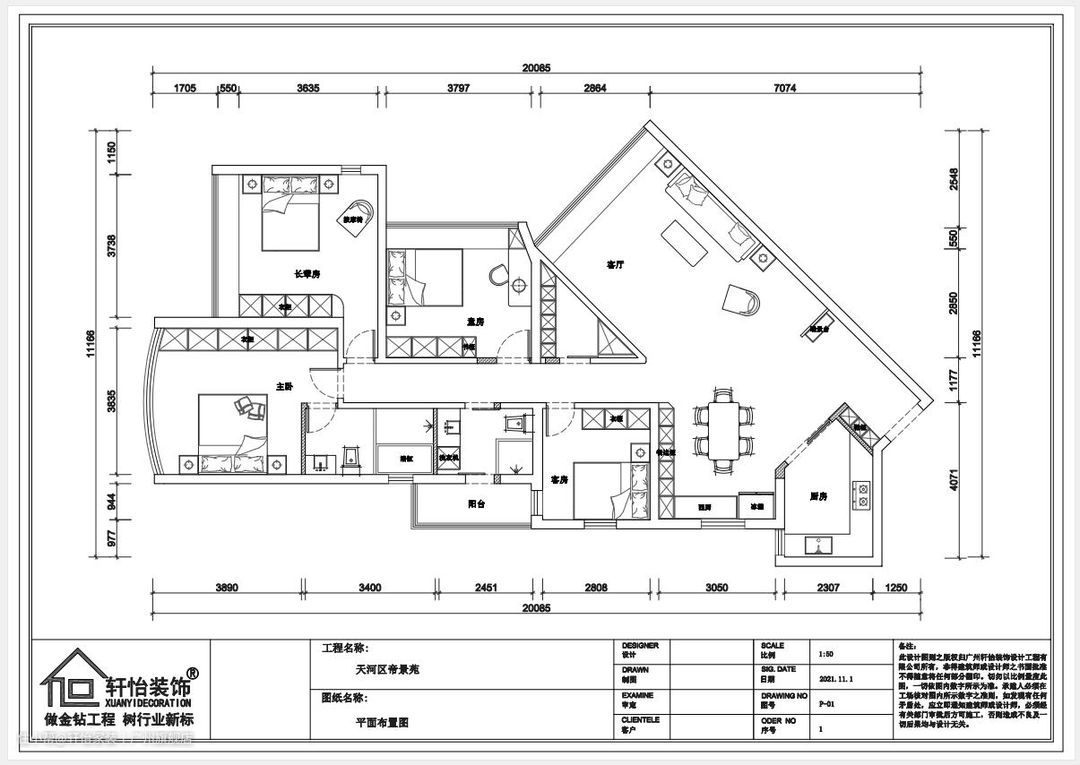 ✿゚户型问题 1、原户型厨房门开在玄关,玄关没有鞋柜位,厨房去餐厅比较绕,厨房采光通风不好; 2、原户型阳台需要从客房进,客房用起来不方便; 3、原主卧内卫门对着床,需要重开门;