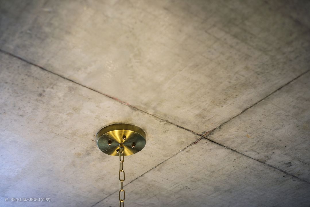 天花保留原有的清水混凝土面层,为了确保质感并且不会返碱起渣,需要将原顶面打磨清除毛刺,清理干净后涂刷超哑光罩面漆保护。