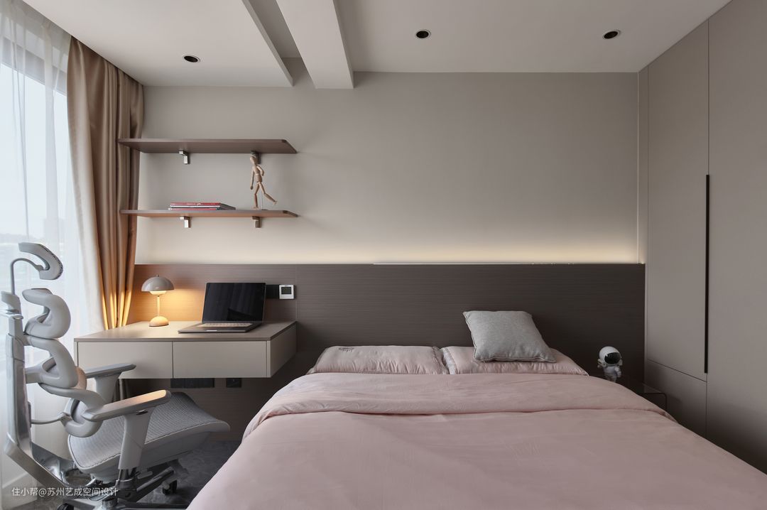 女儿房我们做了一个半高的床头背景设计,结合灯光的布置,简单而又温馨。