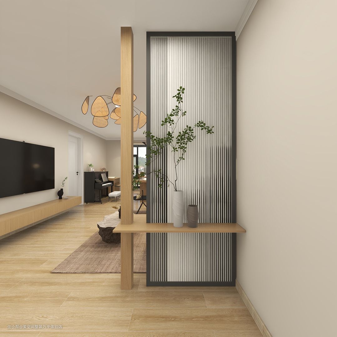 由于这是一进门的地方,中国人在装修传统中讲究含蓄,避免一进门直接直视到客厅,便用了半扇长虹做隔档,摆放上陶瓶花枝,风雅的气质一下就出来了。