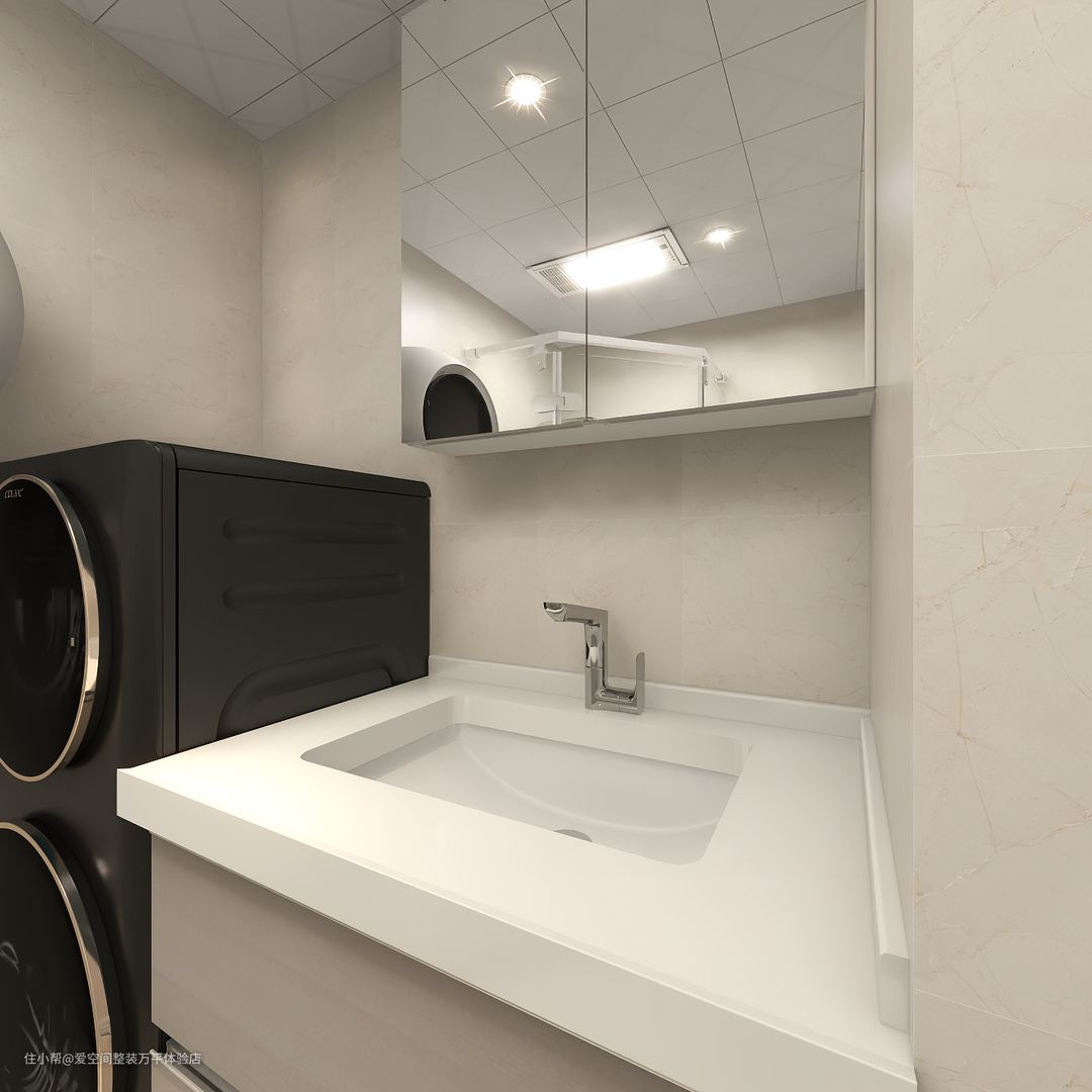 洗手台侧面的烘洗一体机,解决了家中没有阳台晾晒衣物的尴尬问题。上下一体的机器,也很节省摆放空间。