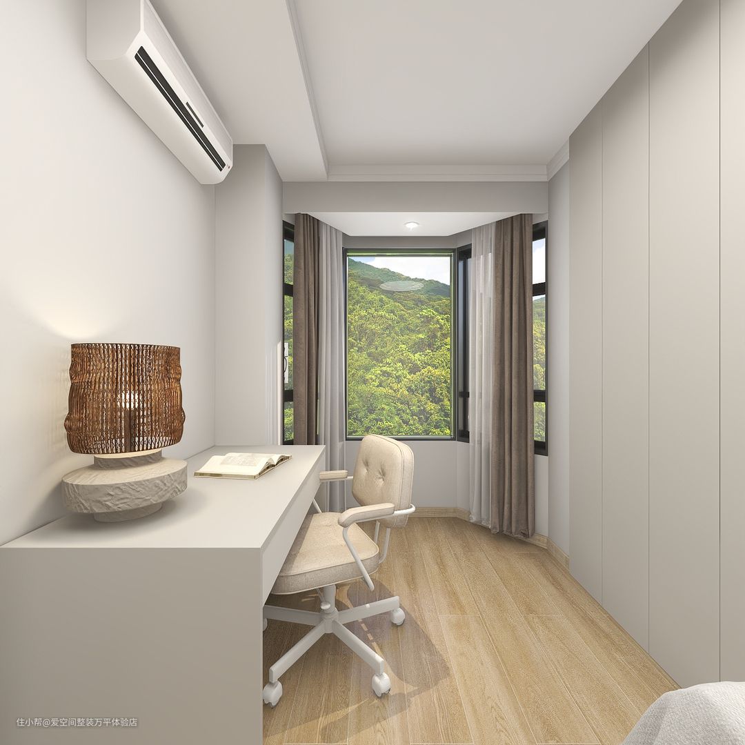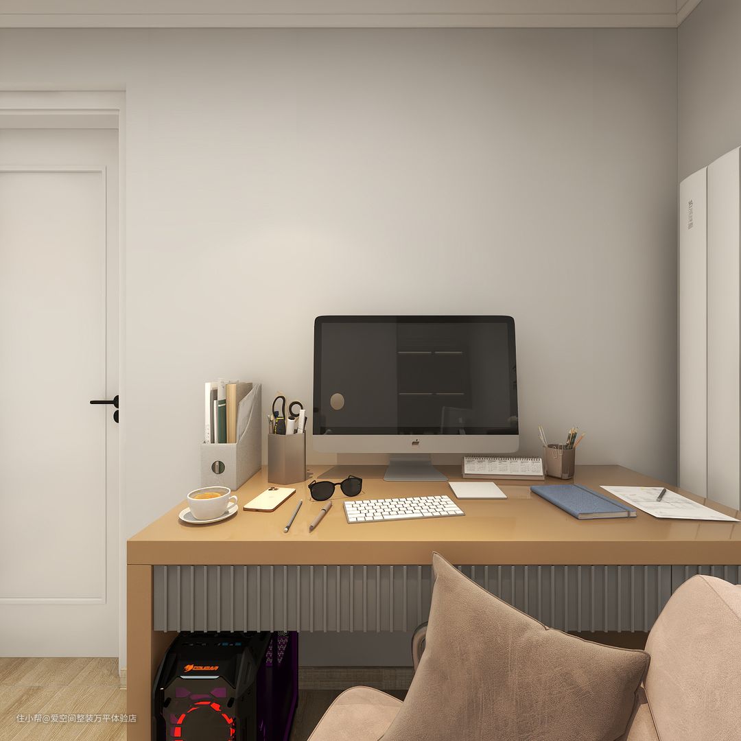这个区域在拆除了原本的墙体后,在这里办公学习的同时也能和客厅、餐厅区域的人聊天,形成一个贯通式的空间后,空间透亮开阔,也让人的心情更加愉悦。