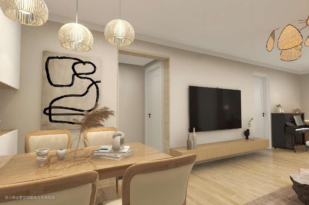 【屋主介绍】 本案的屋主是一个幸福的三口之家,夫妻两人都是一所国际学校的老师,家中的女儿也在他们所工作的学校上学。三人都喜欢宁静自然的生活环境,这个国际学校地处市郊,于是便在这个依山傍水的小区,购买了这套两居室。 【屋主需求】 1.屋主喜欢家居是天然化的材质,回到家中能够得到更好的放松。 2.整个设计要更注重室内的采光与通风,还有家人之间的互动。 【房屋信息】 面积:90㎡ 风格:日式风 户型:两室一厅一厨一卫 装修成本:15万 地点:北京 【设计方案】 1.拆除厨房与客厅的墙体,使客厅与餐厅、厨房形成“一键三连”的互动空间。 2.整个公区的家具材质,都尽量还原了天然材质本身的形态与色彩,减少人工痕迹让家中倍感舒适与惬意。 3.主卧泡芙大床,柔软舒适,柔和的线条与整个卧室的温馨气氛,进行融合交汇。 4.次卧的台灯、树枝床头桌、更加天然纯粹的细节装饰,营造惬意悠闲的生活气氛。