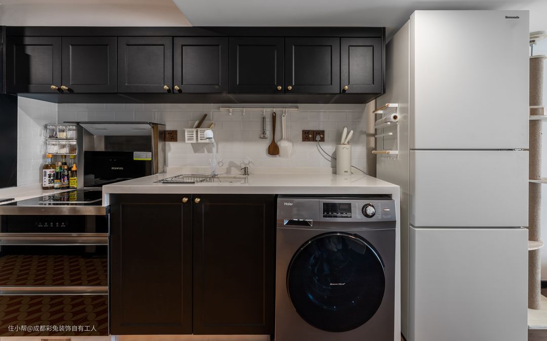 #厨房 #黑色系 #嵌入式家电 #吊柜 嵌入式滚筒洗衣机链接: