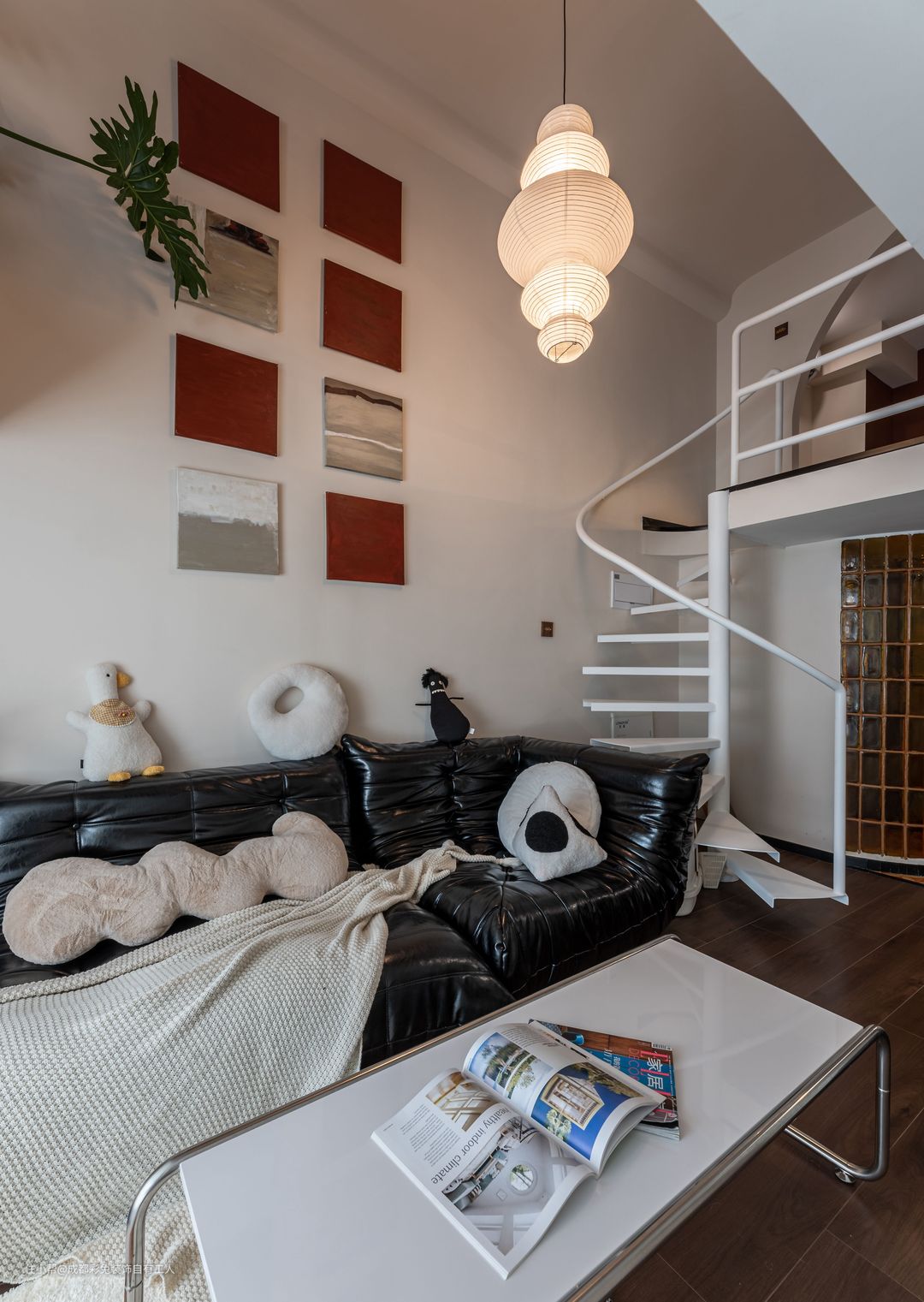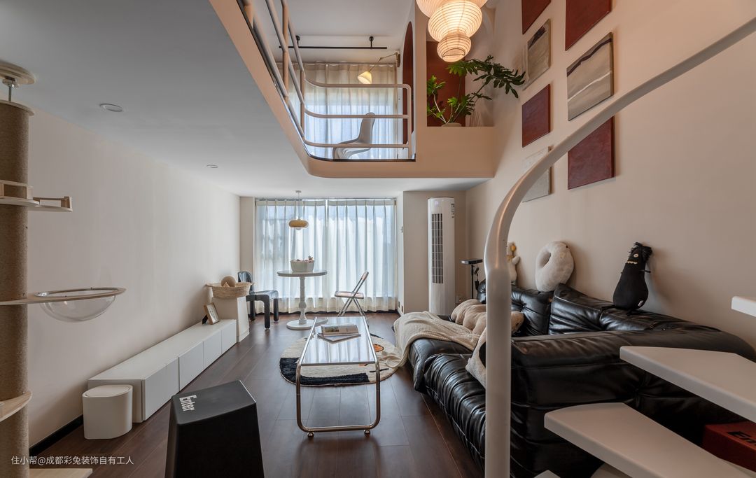本案例是为一位95后女性设计师打造,她为某服装品牌提供设计方案,长期的创作与思考,令这位美女的审美高于常人,看法更加的现代与前卫,对色彩的敏感度也更高,基于以上,我们为其量身定制了一套装修方案,风格主体为现代,同时混搭意式与日式,整体上,布局和色彩摒弃传统的装修方式,表达出女主人不被定义的生活态度。 另一位小主人kiki,已经陪伴了女主人两年的布偶猫,“表示”自己需要一个猫爬架,以及通往二楼的楼梯也是自己的专属地盘。