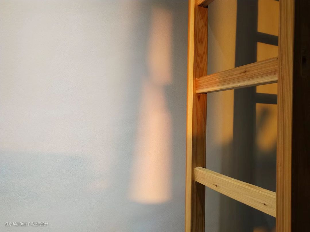 这是上二楼卧室的梯子,阳光照进来的时候真的太美了。