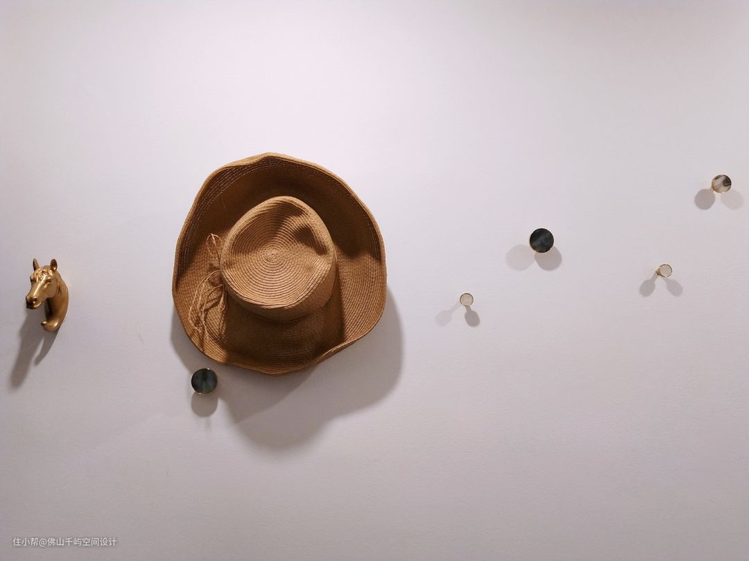 右手边利用空墙做挂钩,仿北斗七星的位置,真的好好看,可以放点雨伞,包包钥匙,帽子之类的,实用又美观。
