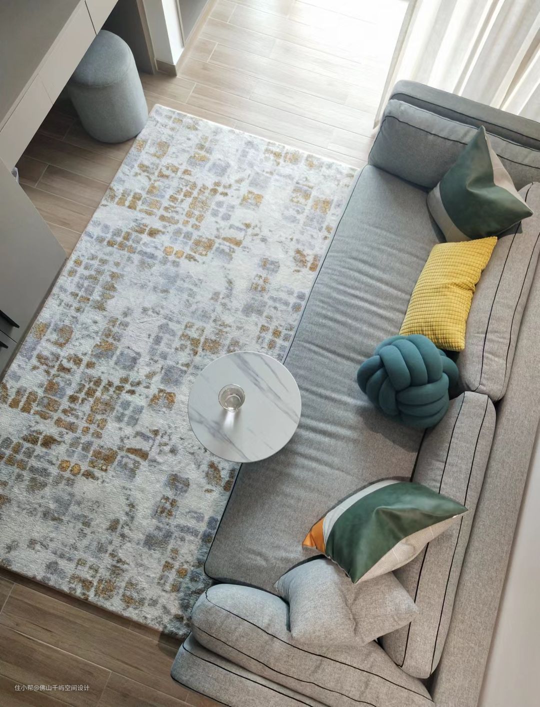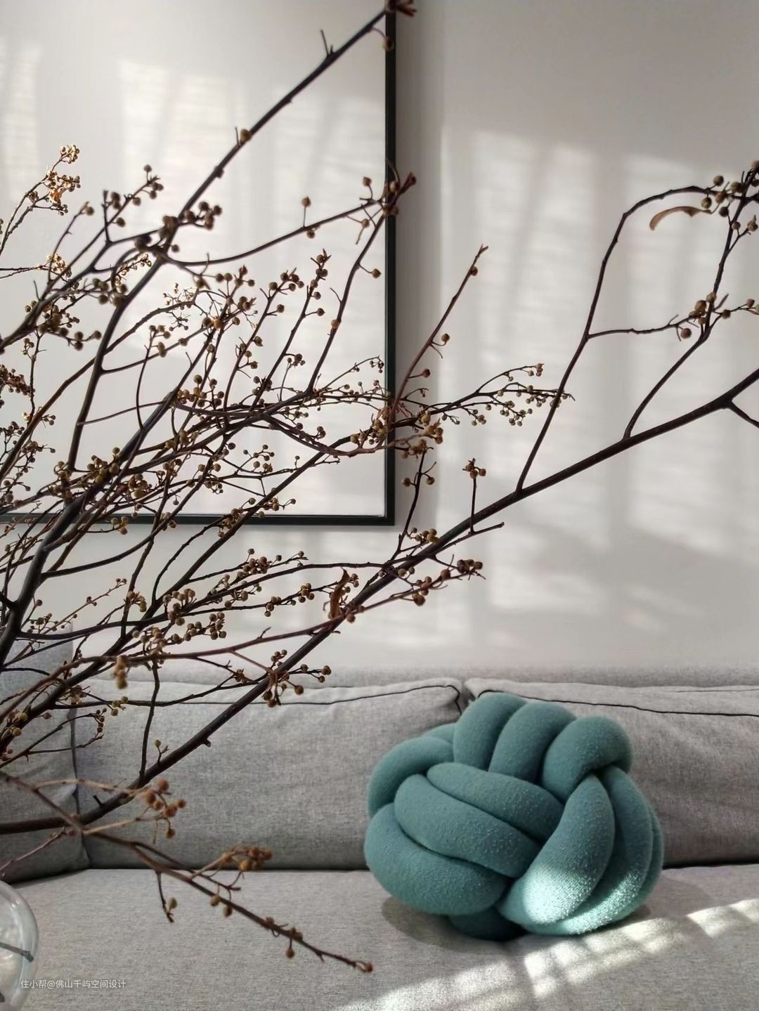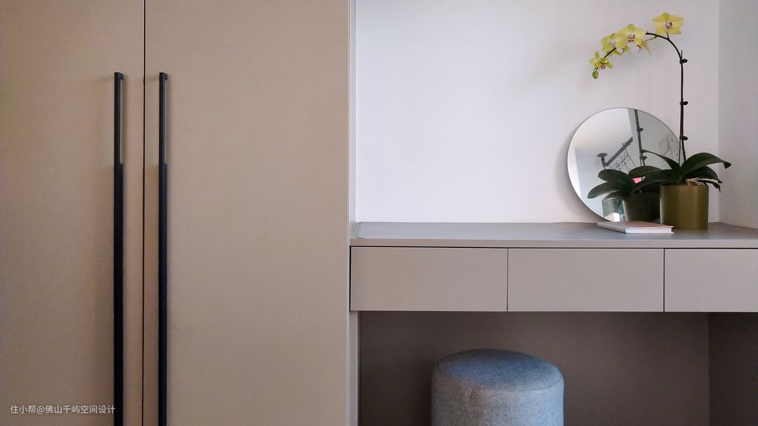 沙发跟梳妆凳都用了灰色的布艺,简约温馨,利用抱枕让整个空间鲜活起来
