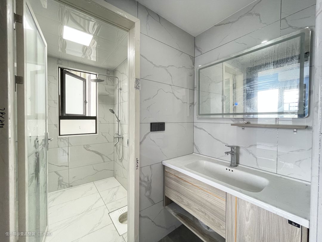 卫生间做三分离设计,将厕所门放置往里挪1.2m留出洗手台位置,卫生间跟洗手台两个空间可同时使用,减少等待时间。