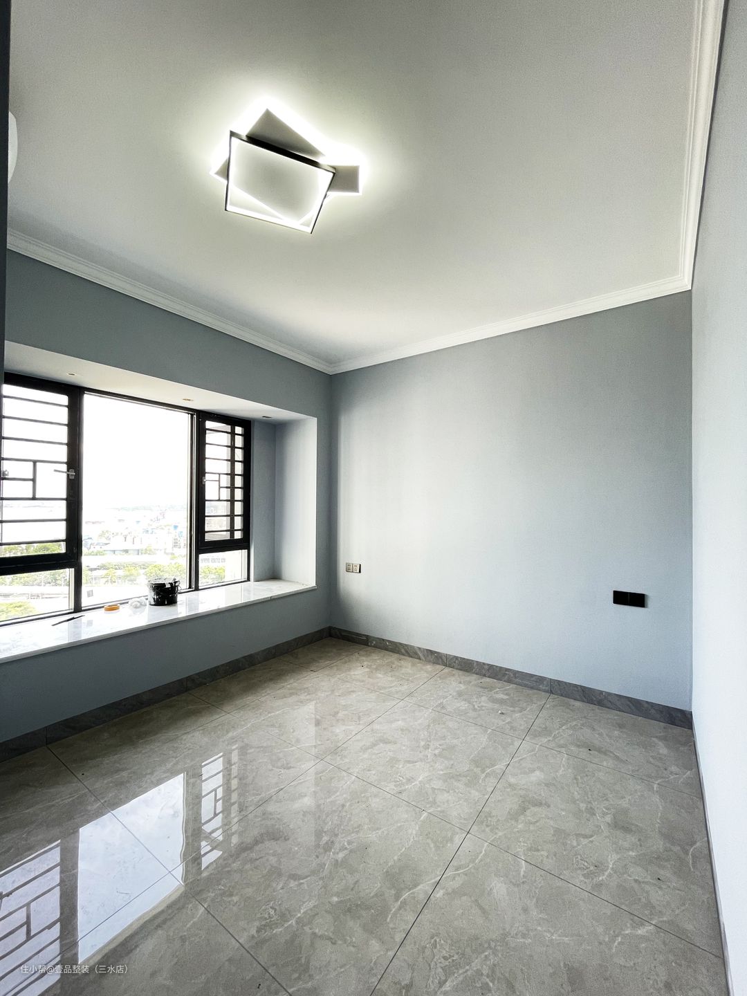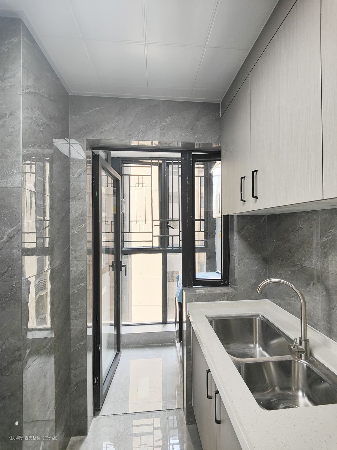 阳台打通地面通铺600*1200大板砖,白+灰配色保证整体采光问题的同时突出空间质感。