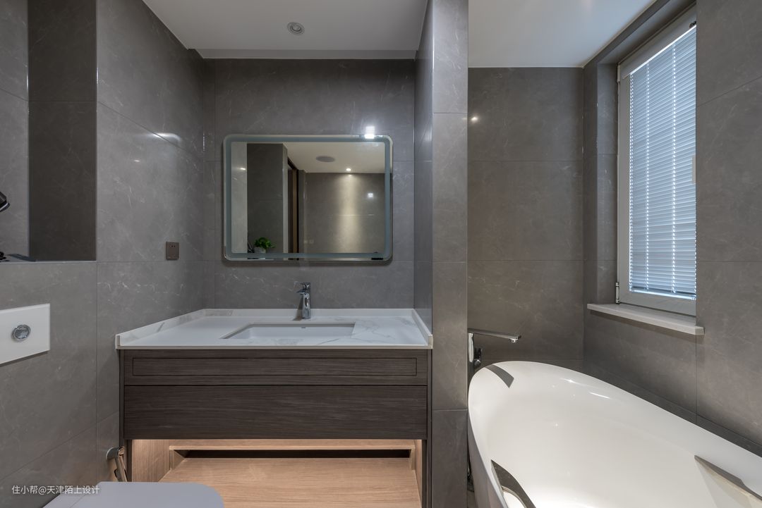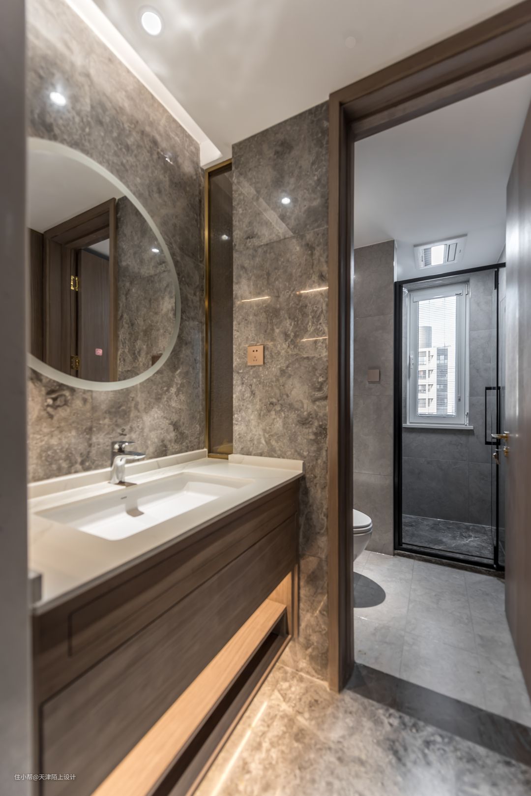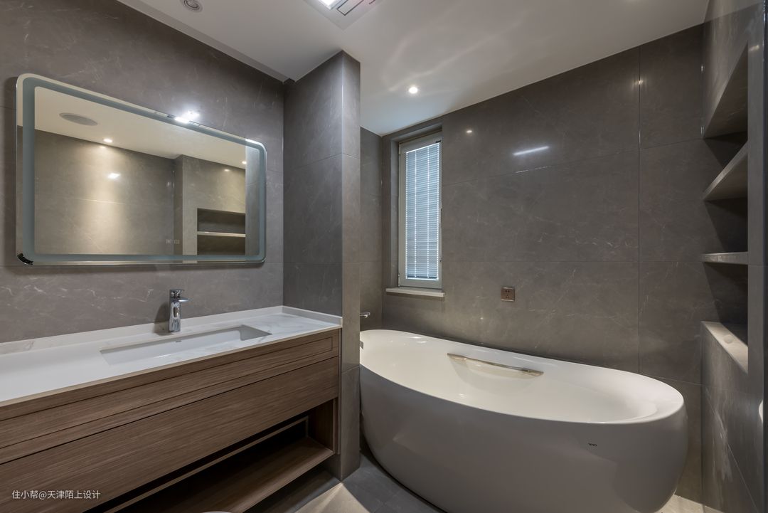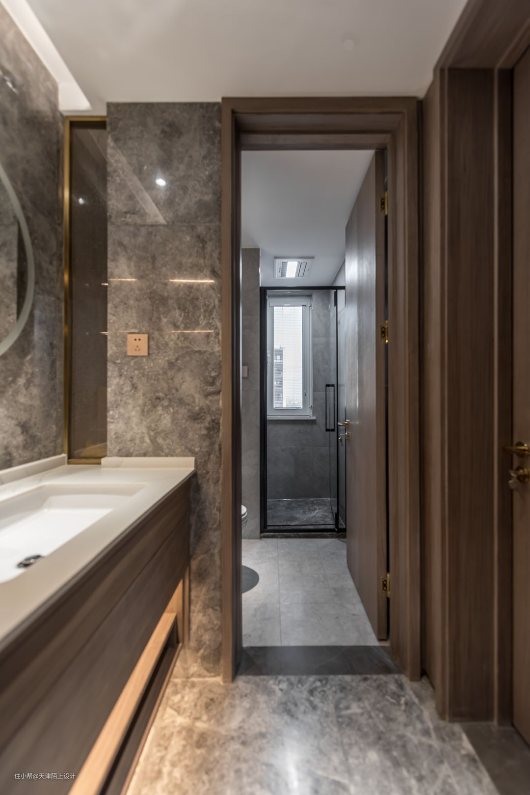 主卫全石材的处理,不会入眼华丽,但并末丢掉轻奢的质感,低调内敛的轻奢本质在这个主卫里完美的展现出来