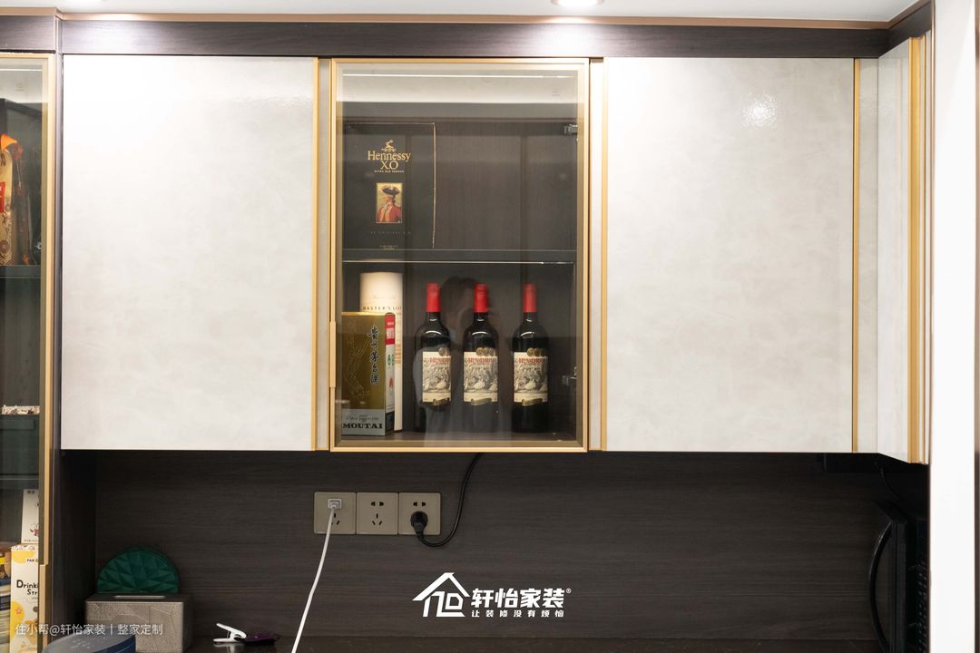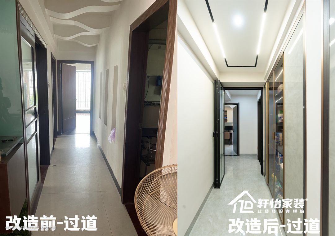 其中,过道的收纳设计也是一大亮点,利用过道的空间,打造了一个嵌入式的收纳装饰柜,采用玻璃推拉门设计,方便日常用品的存取,真是实用又便利的设计,太贴合生活了,同时增加走廊的空间感和收纳功能。