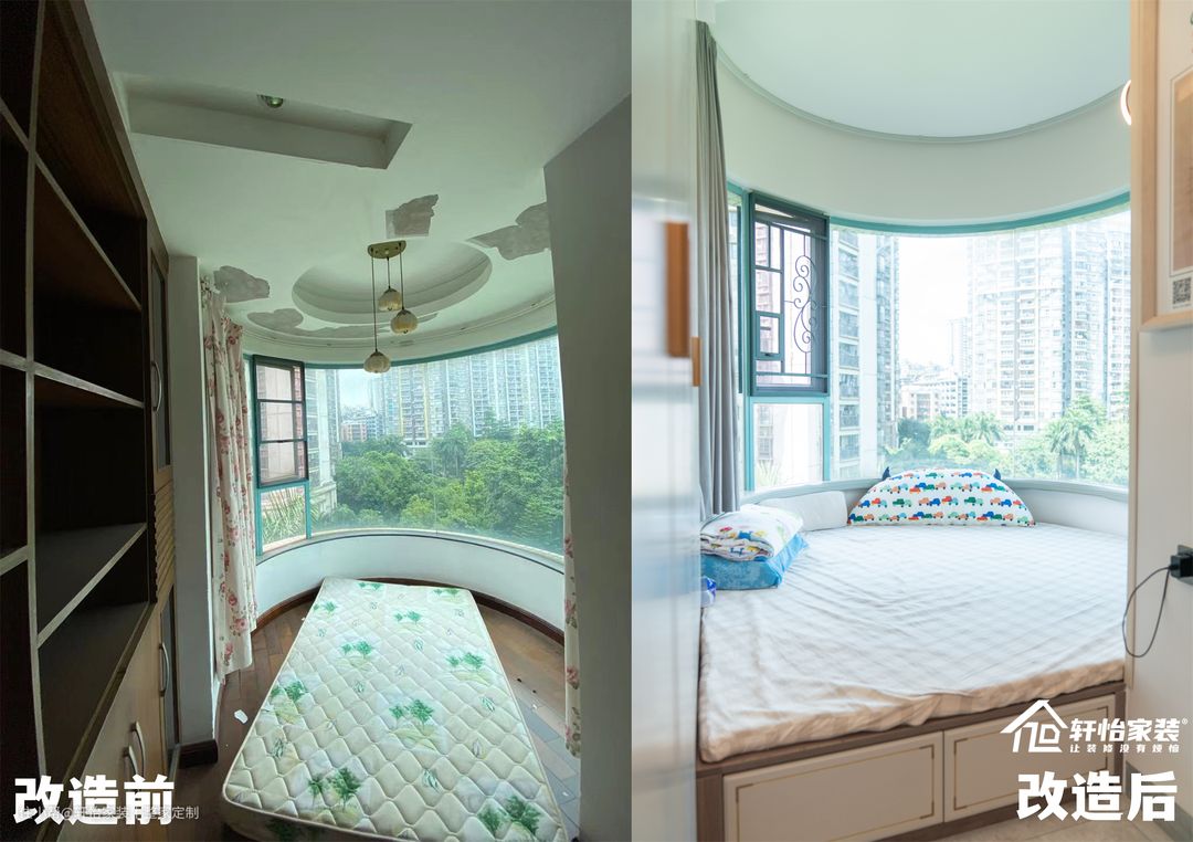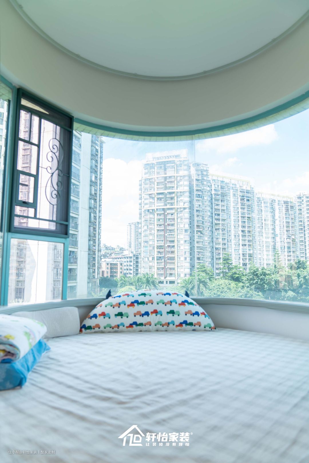 多功能房的“个人魅力”不仅是集学习办公休闲于一体,还要突出展现的是这张利用原户型阳台尺寸打造出来的半圆弧床体,360°全景外窗视野,搭配一个圆形天花,犹如中世纪的古城堡一样独特,作为多功能房“锦上添花”的设计亮点,用作休息待客一点也不失面子。