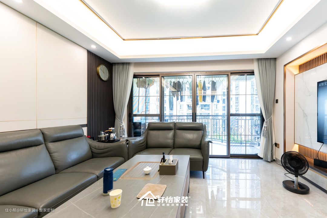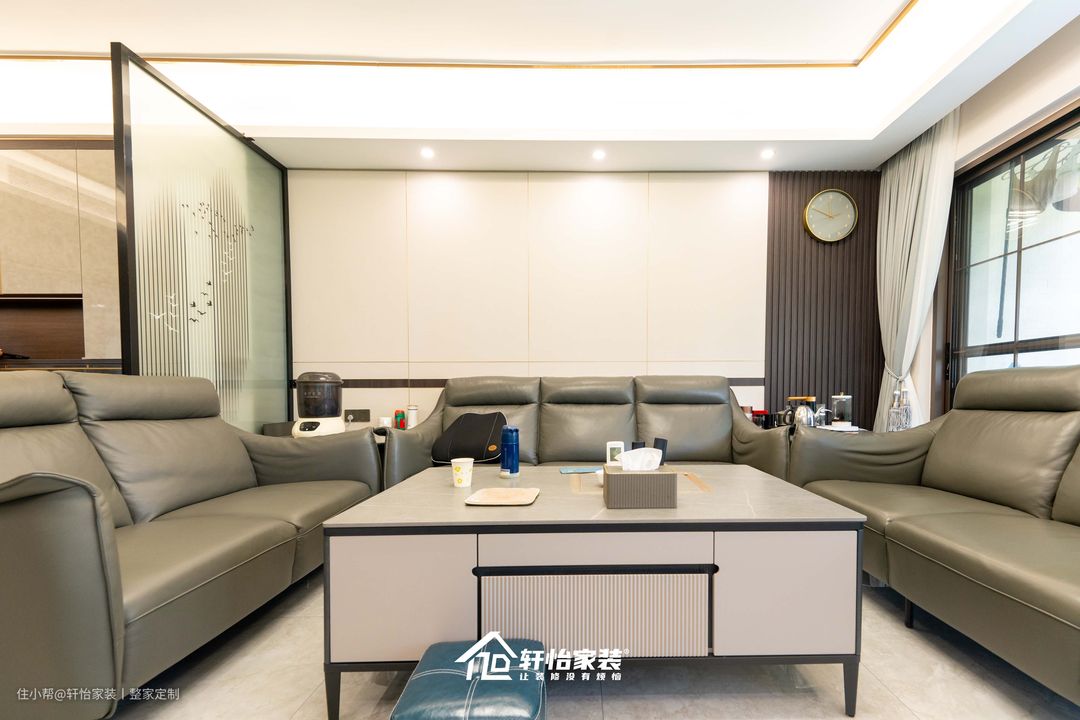 灰色皮质沙发呈围合式设计,同时保留传统茶几布局,娱乐与休憩时光都在客厅发生,恰恰为业主打造了一个家庭式交互空间,无形中又提高了居家幸福感。