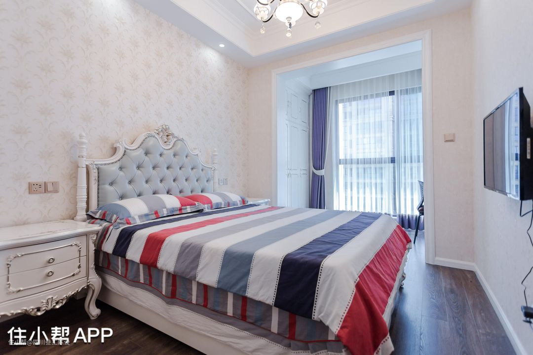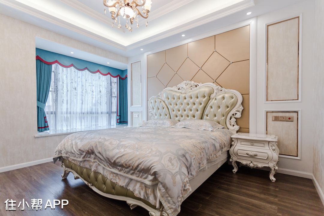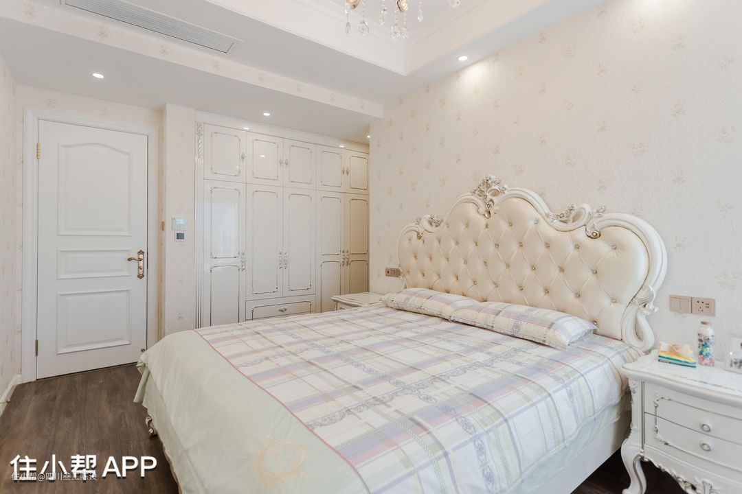 主卧从整体到局部,精雕细琢,给人一丝不苟的印象。 在家具上保留了材质、色彩的欧式浪漫典雅的风格, 可以很强烈地感受传统的历史痕迹与浑厚的文化底蕴, 嵌入式的衣柜、简约的床品摒弃了过于复杂的肌理和装饰, 简化了线条,融入了床尾巾、凳子,温馨而浪漫,十分优雅。