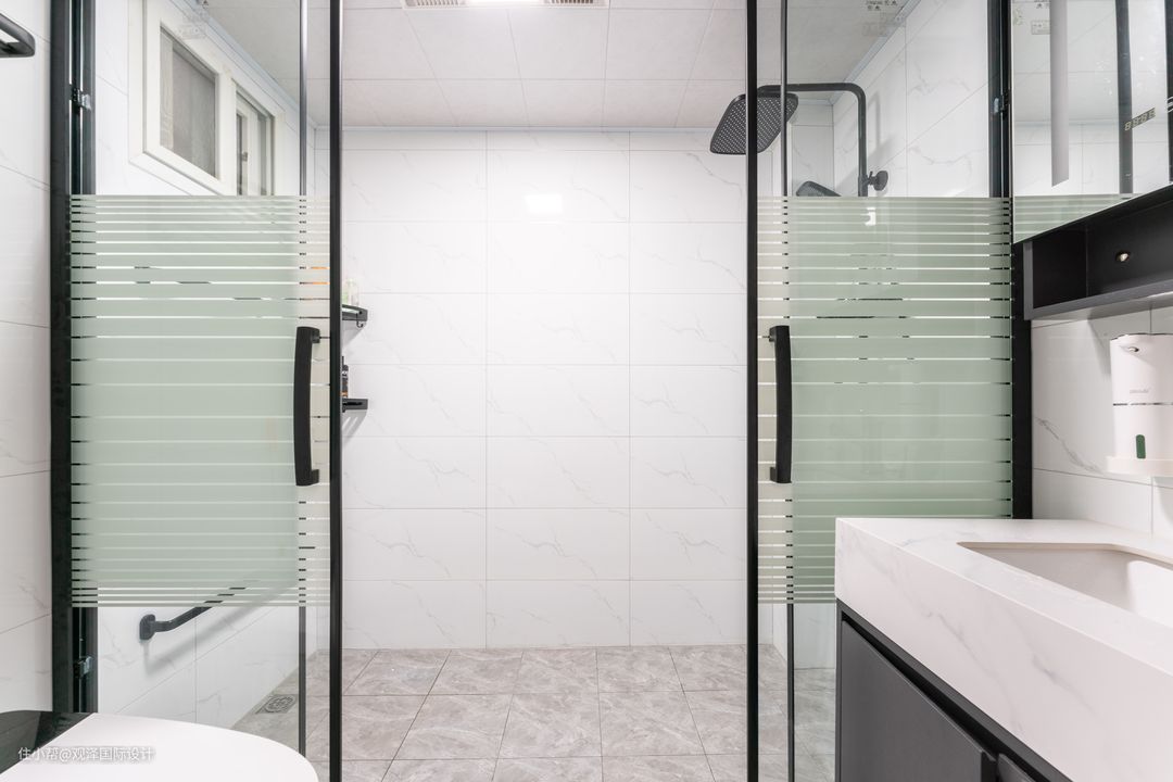 一改上一任业主挤在一团的老卫生间,设计师对其进行了干湿分离设计。