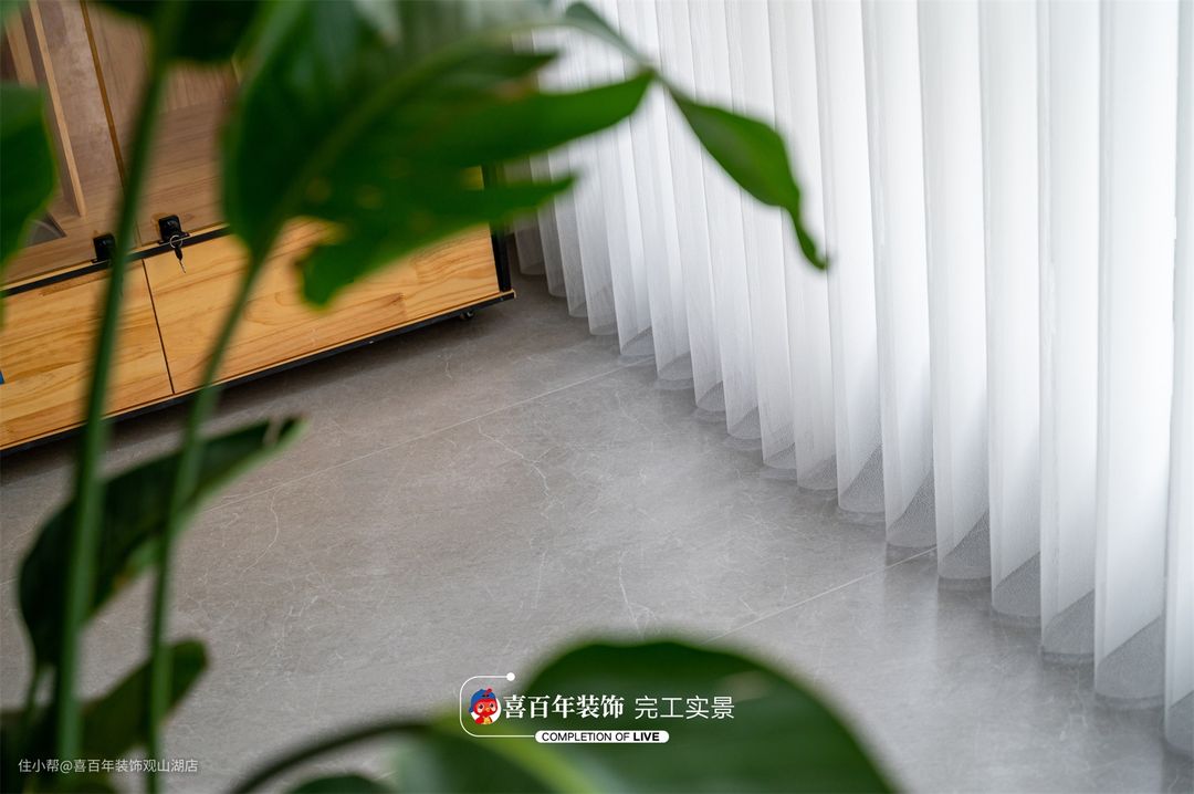 从这个角度就可以看到大阳台带来的视觉的空间感真的很舒服,光线敞亮又通透,白纱一定程度上避免强光和隐私。