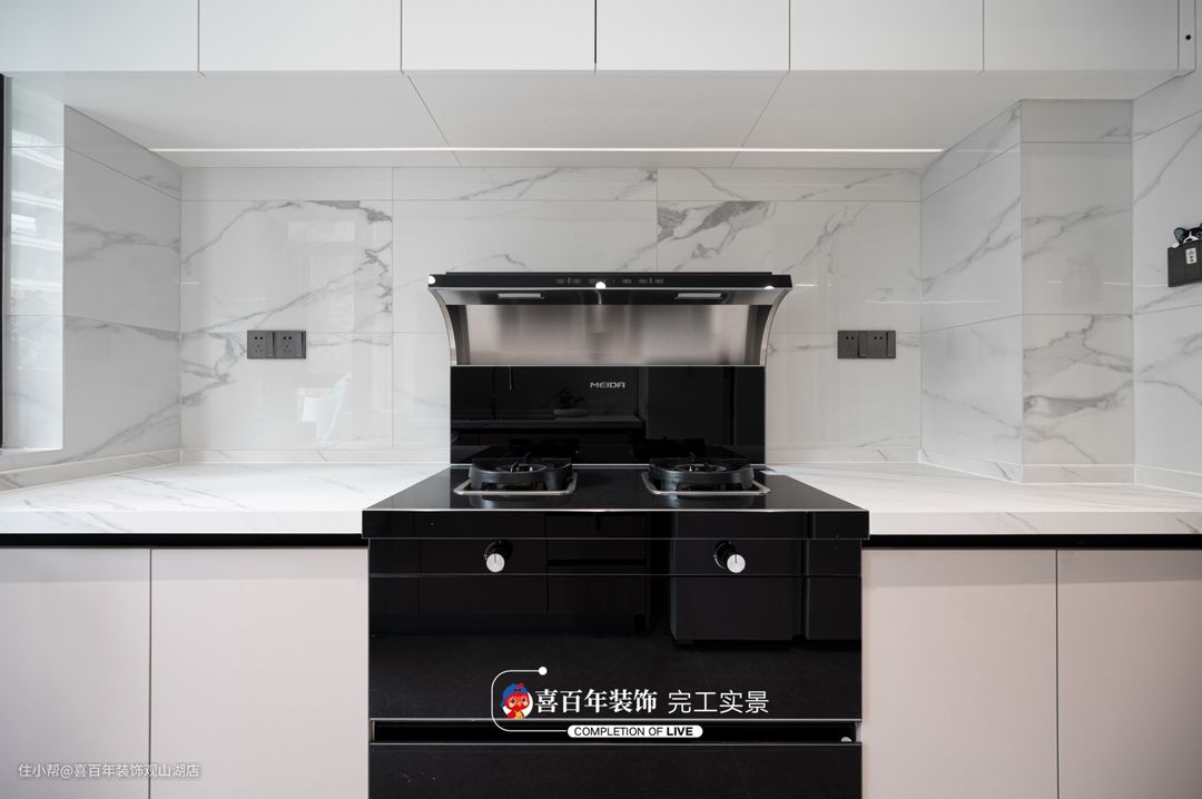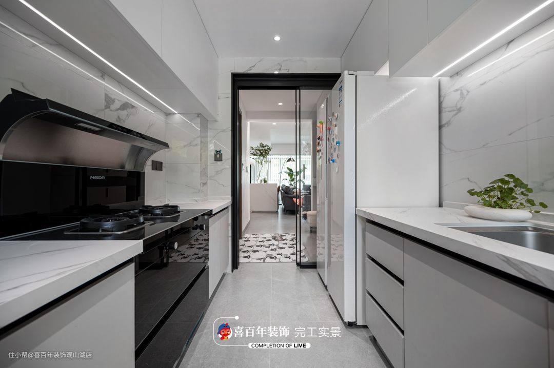 厨房作为延伸的长方形,厨台做成二字型操作更流畅,满足日常做饭需求。厨房与餐厅呈直线距离,日常动线更方便。