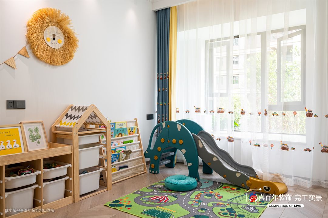 儿童房目前小孩还小,还是跟父母同睡,就改造成他的游戏房,根据小孩拿取的高度做收纳空间,培养小孩从小玩具收纳的习惯,这样做的另外一点是玩玩具的地方再也不是在客厅,一定程度上可以避免客厅的杂乱。