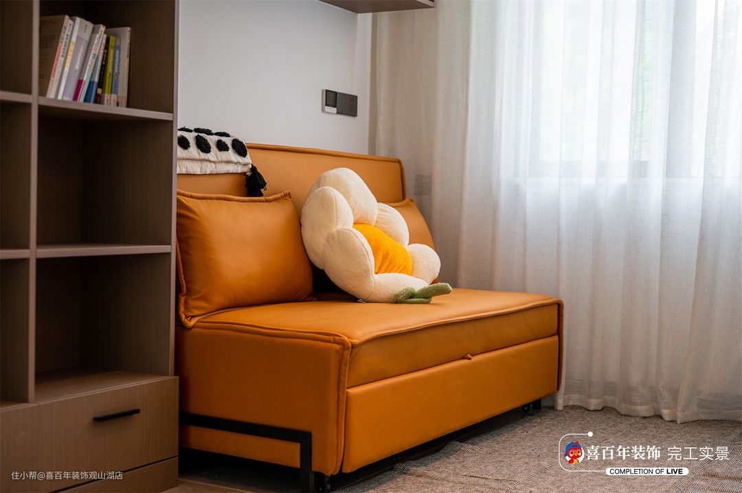 暖色调的小沙发,一物两用非常实在。建议家里空间不大做客房的都可以使用。