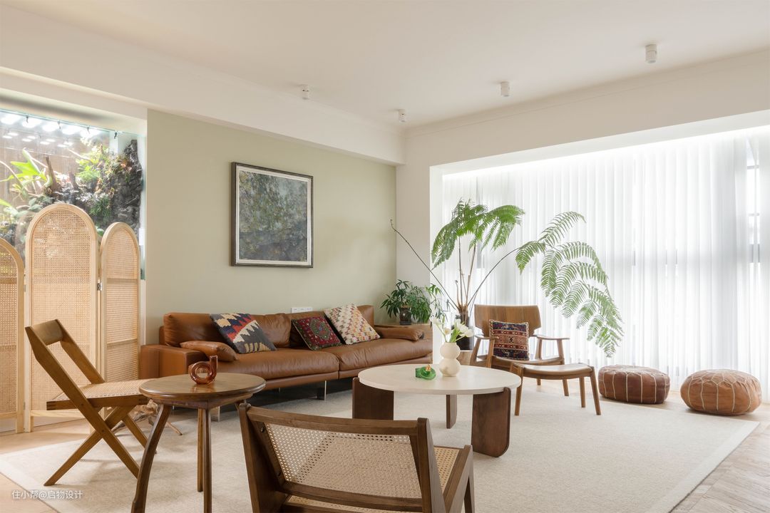 拜访Germany的新家仿佛逛博览馆,除了绿色的生态景观,还有许多她旅游时从世界各地淘回来的极具东方艺术气息的工艺品。休闲客厅一面是品味与艺术兼备的陈列意向,一面是惬意自如的悠然生活。