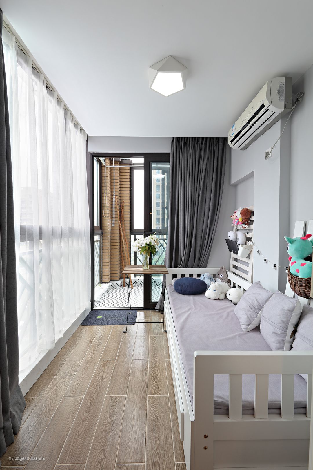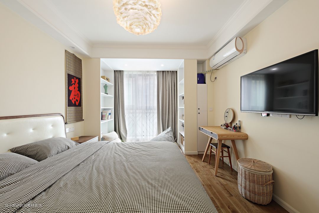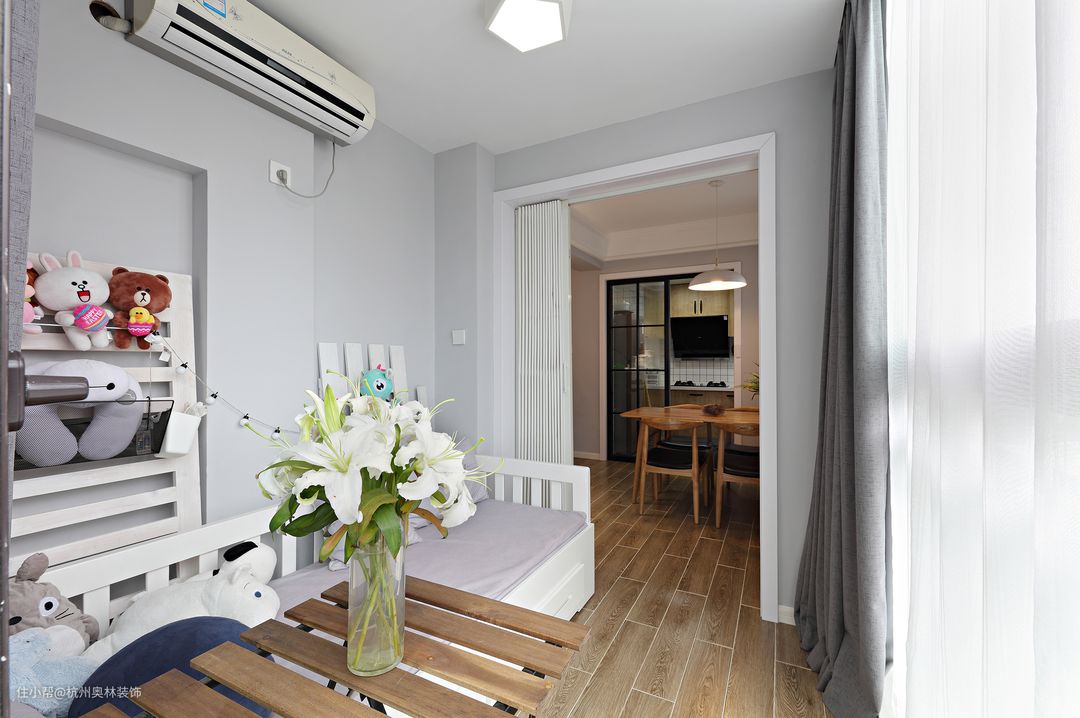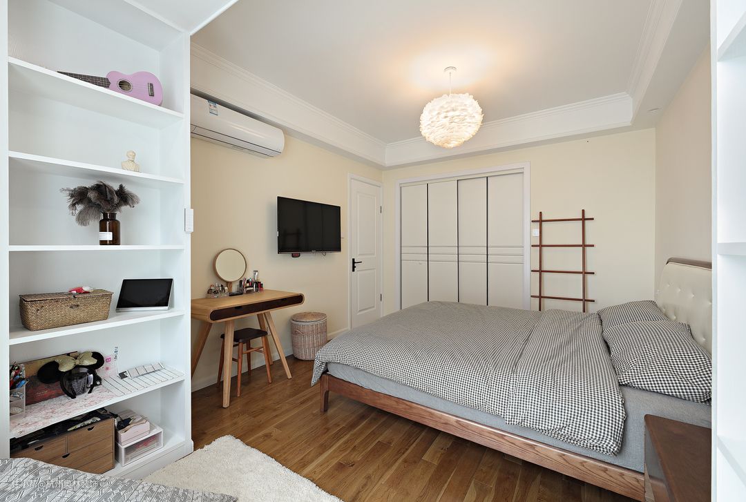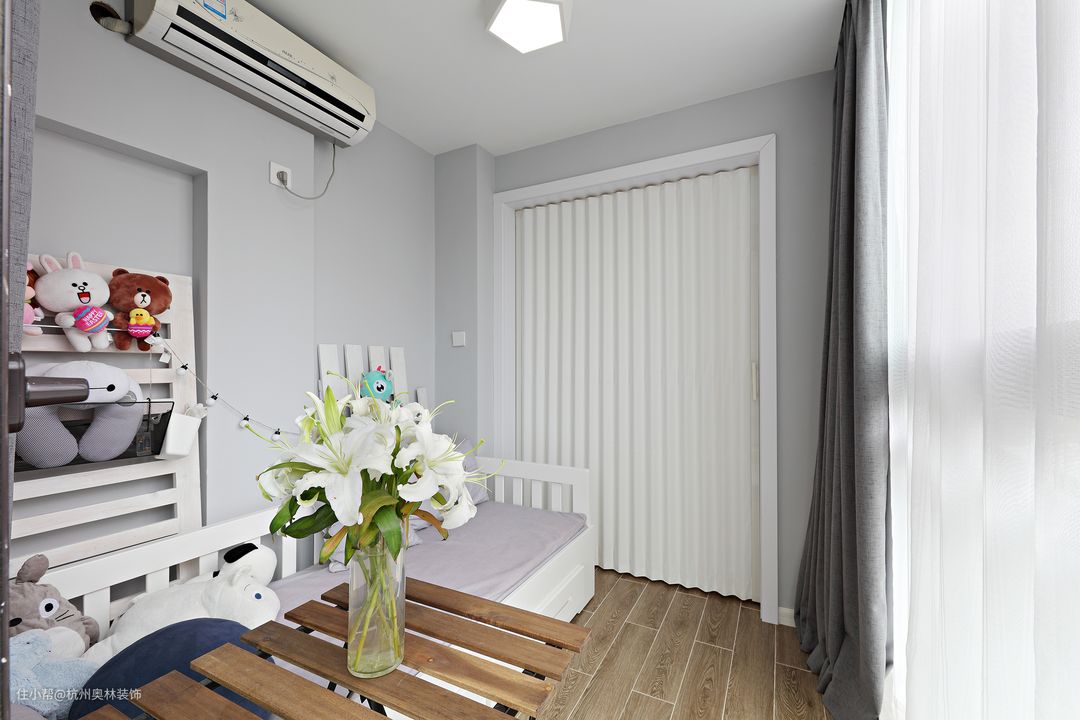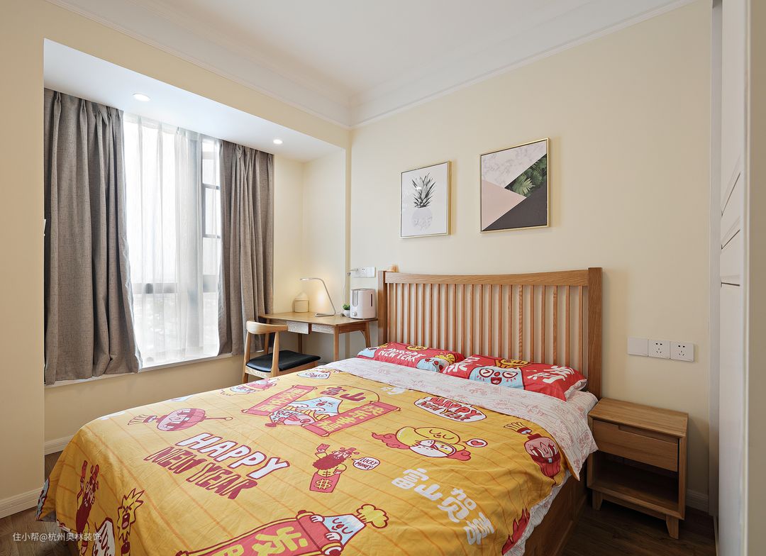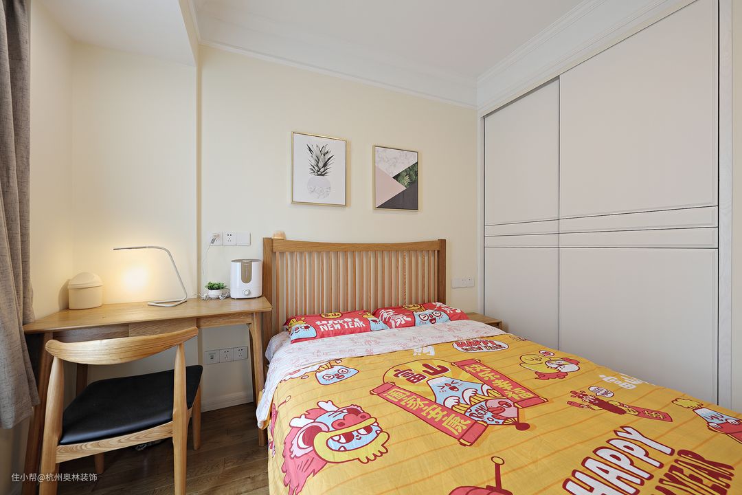 次卧敲掉了飘窗,放置了一个书桌方便孩子使用。没有去把飘窗与卧室连接处与墙面平齐,是想通过这些明暗对比和凹凸来提升空间的层次感。
