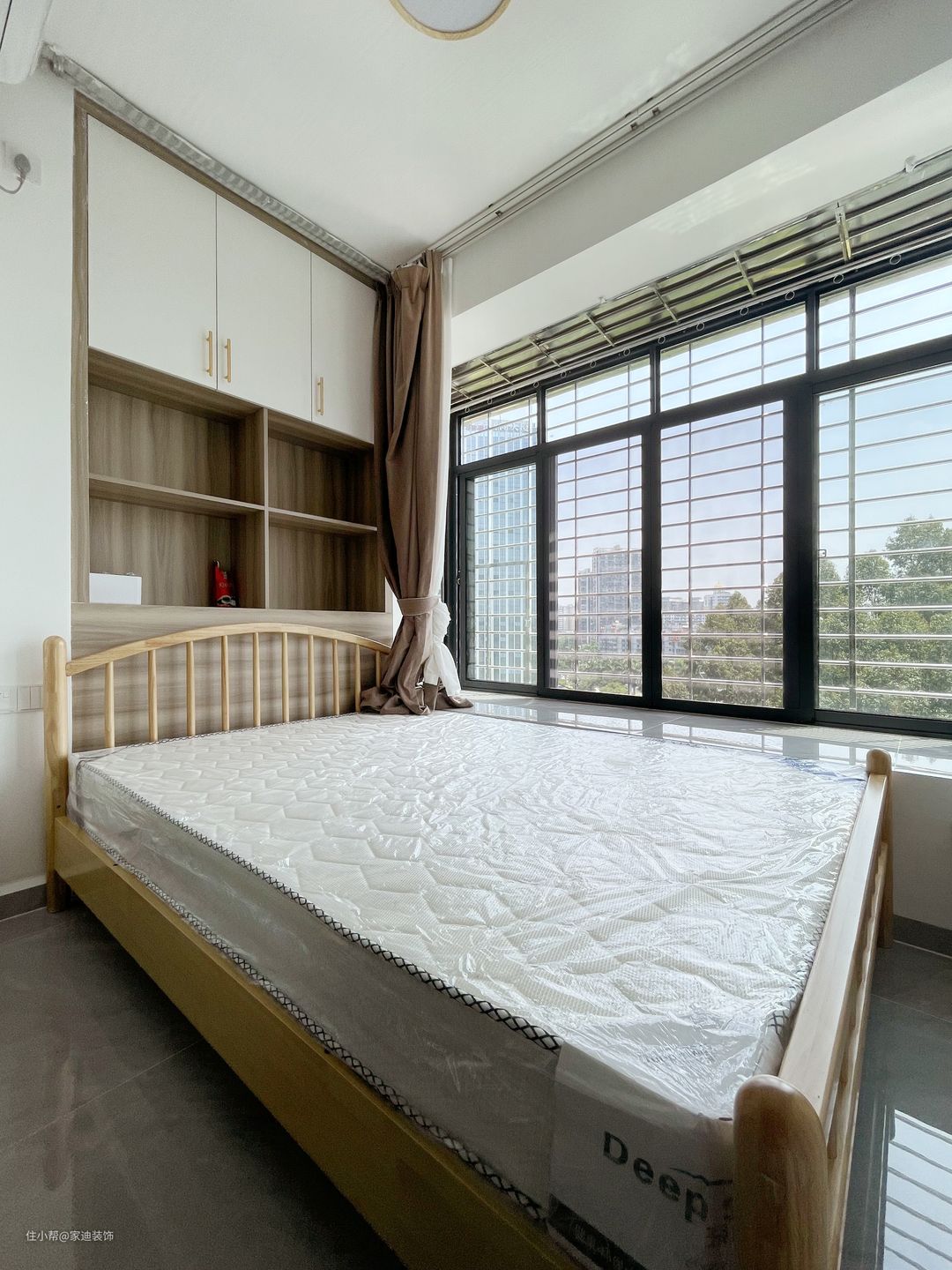 最大化的利用有限空间,将原有生活阳台改为卧室,用玻璃门做隔断,白天敞开推拉门,让室内光线得以自由流转。合理榨干每一寸空间,尽量实现空间的多功能性,同时满足家庭的需求。当然颜值和舒适度也是不能打折的!