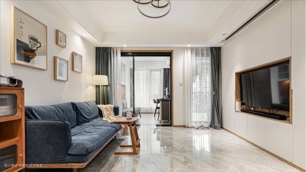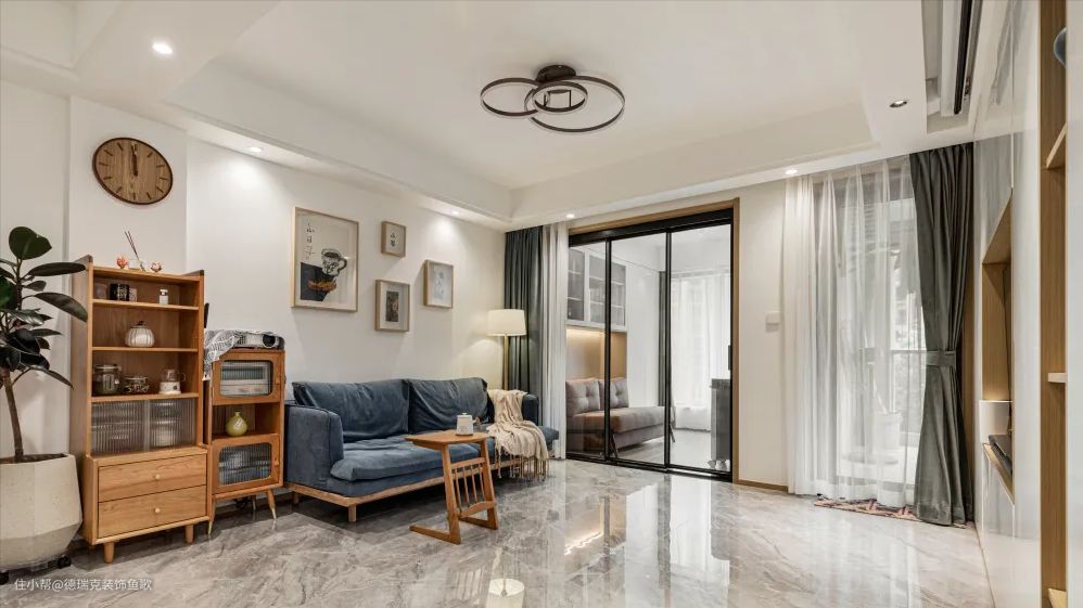 设计师还改了主卧和客厅的隔墙位置,进一步保证客厅的空间和采光。这样的巧妙设计,大大提升客厅的采光,空间变得更加通透明亮。