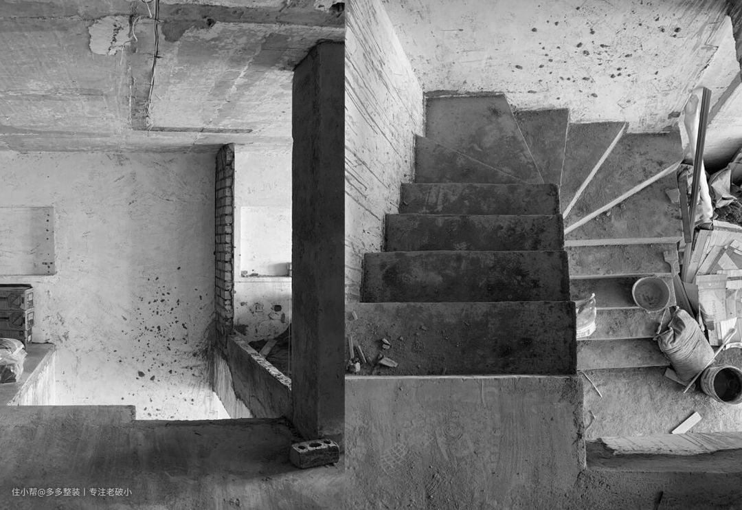 改造过程中的 楼梯洞口和楼梯。
