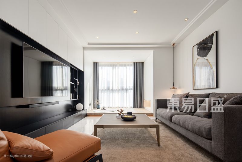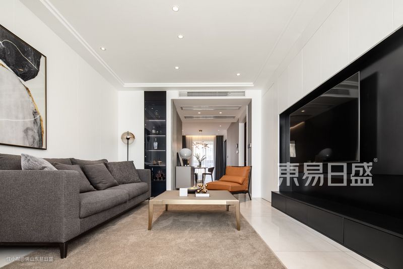 宽大的横厅,落地窗把光线发挥到极致。大横厅的另一端布置成餐厅,随时可以享受到城市中的浪漫,不经意间流露出业主对生活温柔以对的态度。