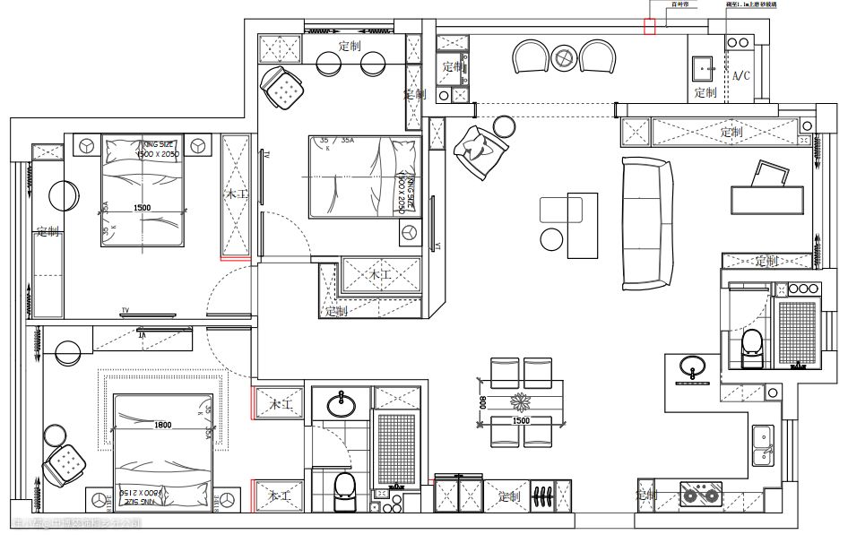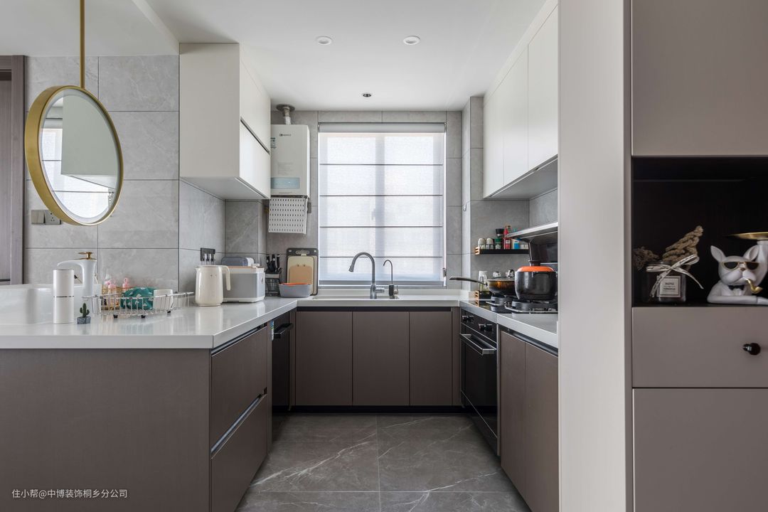 案例设计的是开放式厨房,与餐厅同一空间,采用“U”型布局,按“切-洗-炒”的顺序设计。