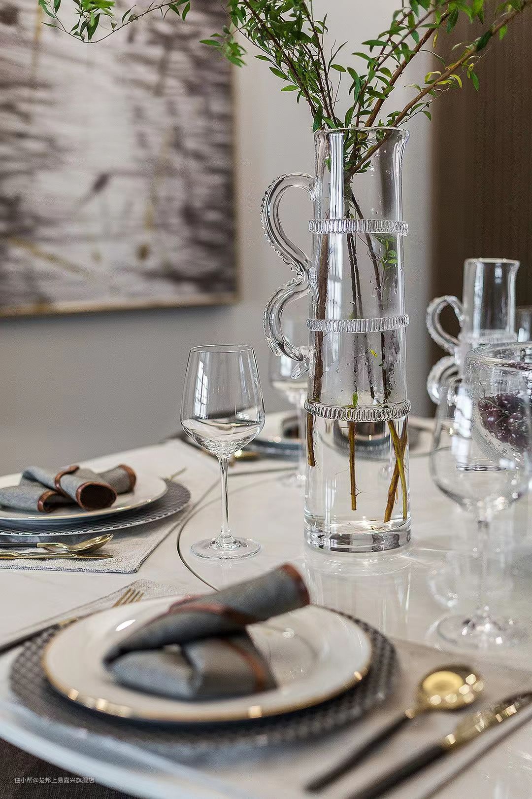 餐桌上轻奢精致的餐具、花盆与摆饰品,也让用餐氛围显得更加华丽情趣而有仪式感。
