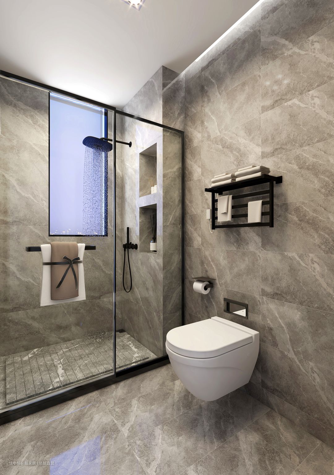 无论是分类有序的内嵌式壁龛储物设计,还是临窗景观浴缸、智能马桶,以及简欧线条灯点缀,都能带来眼前一亮的视觉效果。
