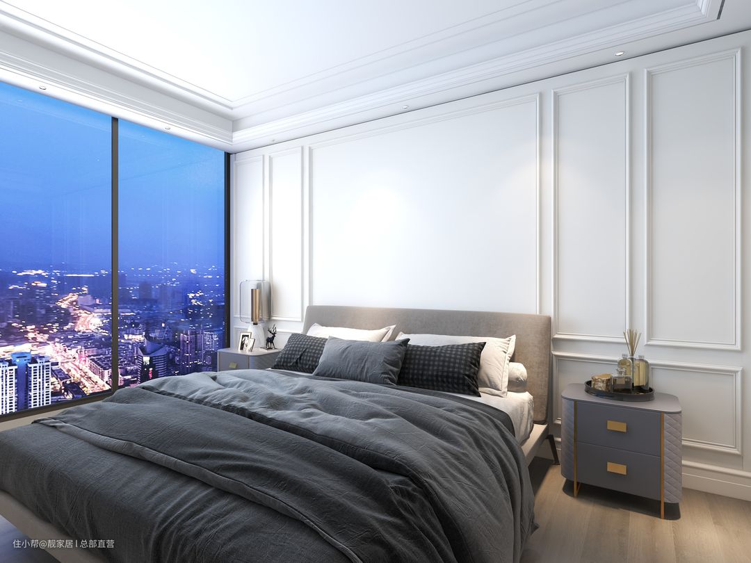 双飘窗引光线敞亮空间,任由微风流淌。每当夜幕降临华灯初上时,一个有品位的家便映入眼帘。