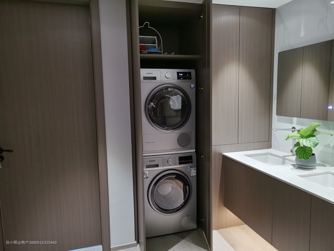卫生间处处隐藏的灯带设计,温馨了整个浴室空间,空间布置利落的线条设计则给这个区域增添了一丝艺术气息。卫生间整体以原木色和白色为主,整体色调高级质感。灯光布置,使得洗手区域光线更强。整体清新实用,给人清爽的使用体验。