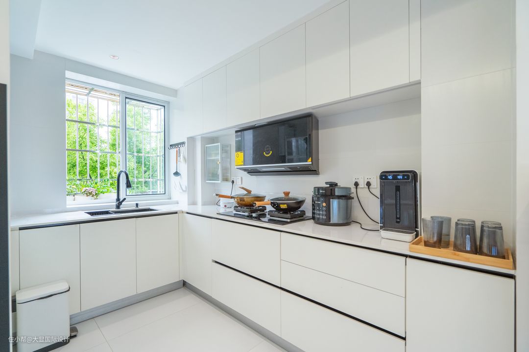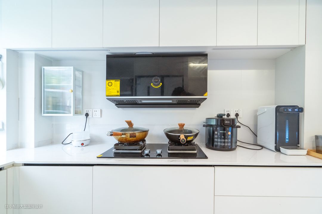 厨房以极简的状态呈现,利落的线条勾勒出外形,化繁为简,处处透露着干净的现代时尚气息,只一眼,生活的冗杂便被三餐之乐摒弃在外。
