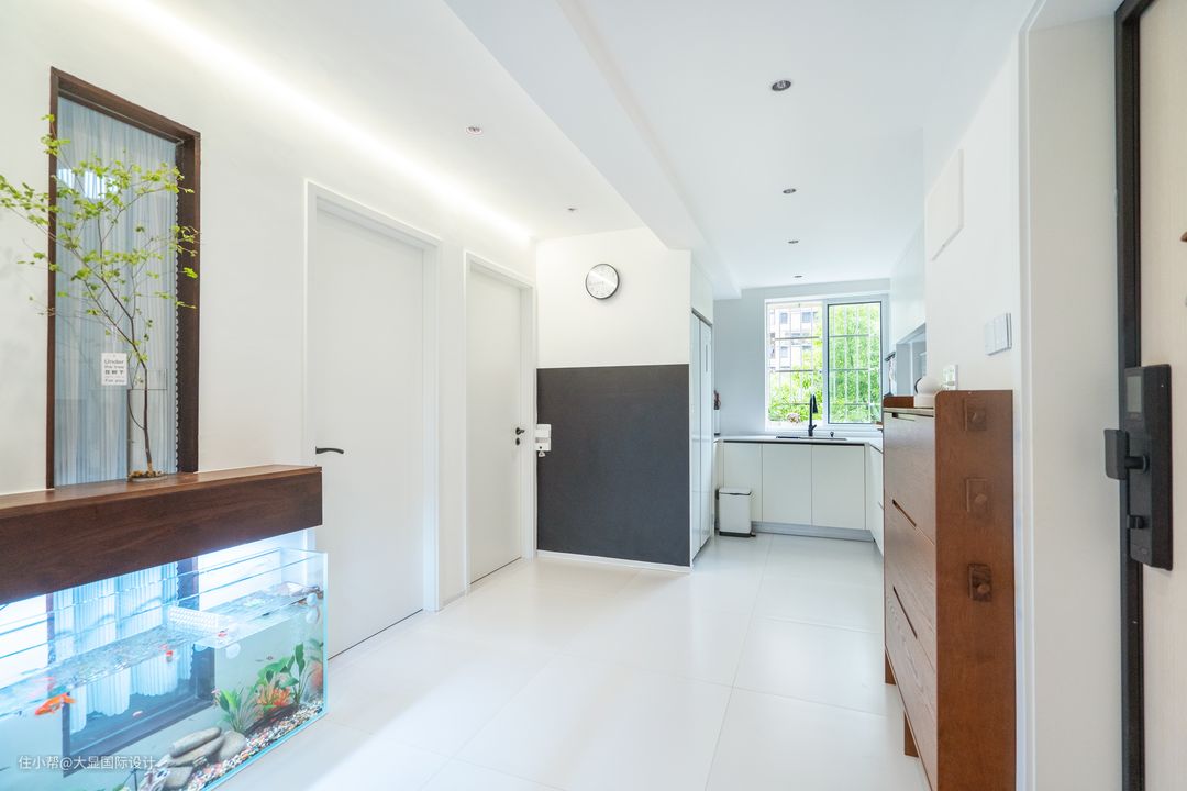 高级的家,源于对生活品质的苛求。 推门而出,是精神抖擞面对外界的忙碌疲劳;推门而入,特意设置男主人心爱的鱼缸景观,是归家后放松身心的不再设防。