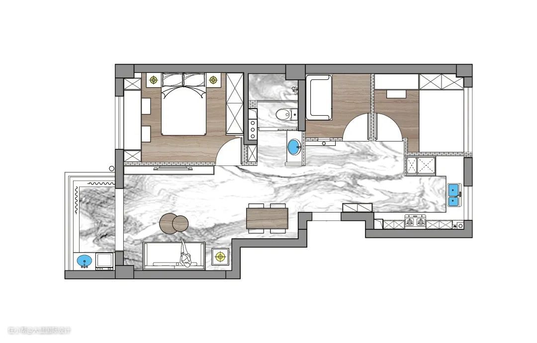设计师提出一个设计理念:在这个家里,不需要任何人去迁就;房屋是需要趣味性的,家居也不是围绕着某一个人在转。 业主,孩子,偶尔来住的亲朋,都可以在此间找到自己感兴趣的事;在沙发观影,在餐厅品酒,去阳台观景...即便是一个人在家,也不会觉得枯燥无聊。