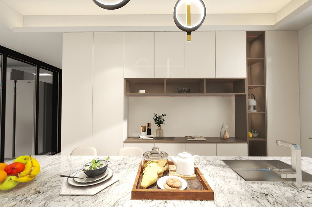 清新乳白色与暖橙色的配合,温馨别有一番风味。
