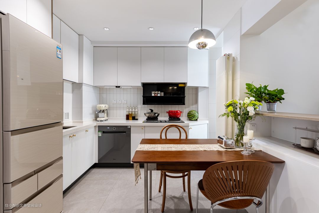 从设计角度看,拆除的隔墙增加了用餐区域的同时还强化了互动空间,也让整个公共区域的动线也更加流畅。 #厨房#洗碗机#收纳柜