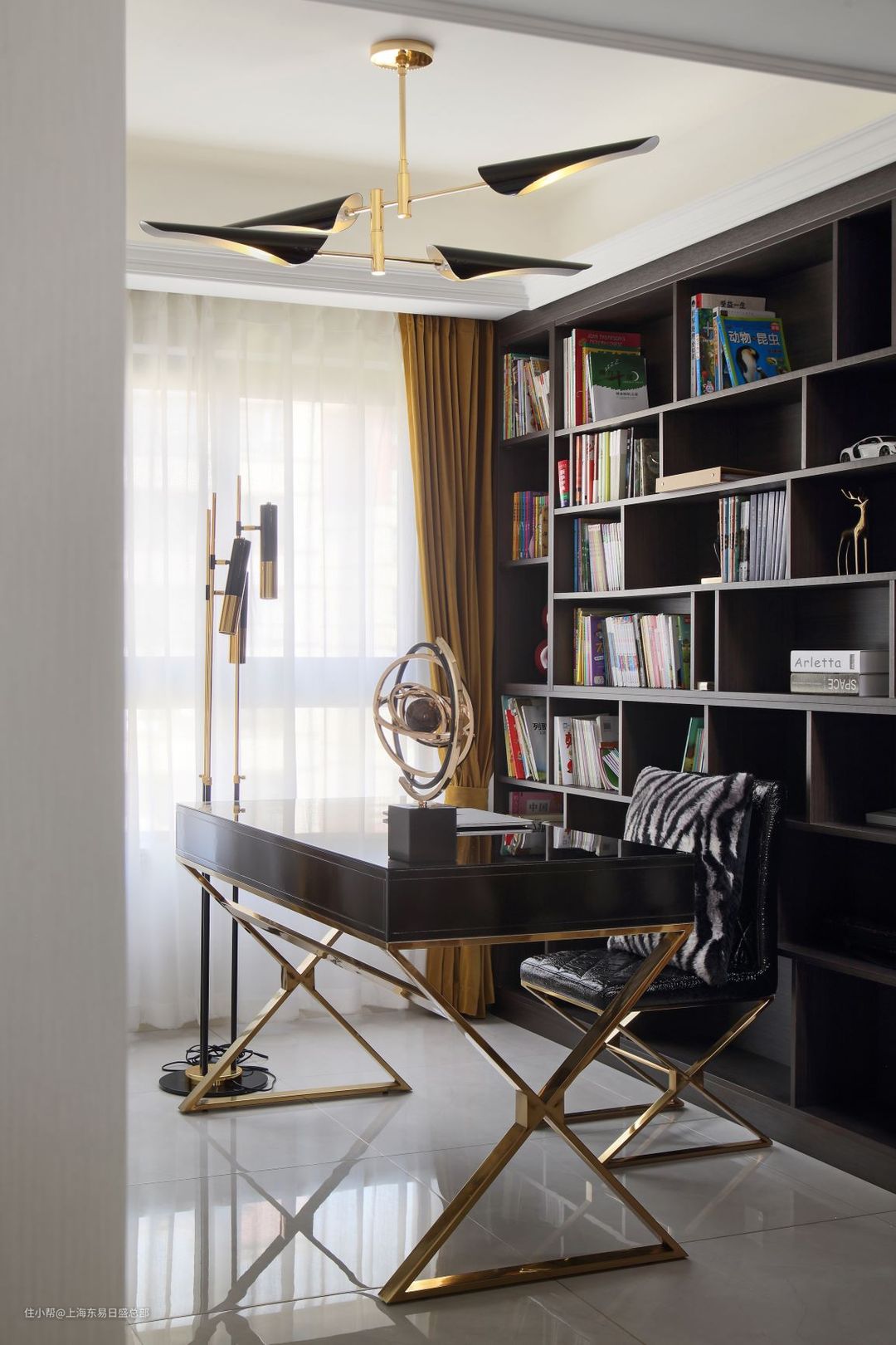 书房是男主人的专属空间,书桌和柜体都选择了男主人比较喜欢的深棕色,在这样的空间中,可以更加专注的看书、工作。书房中也添加了很多金属元素,打造质感十足的视觉空间。