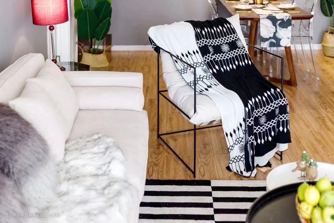 阳台护栏增加屏风做美化造型,轻巧的盆栽可以直接挂上;另一边的水管位置直接做柜子遮挡,旁边设计了不同造型的层板,摆上格式各样的植物,小角落也迸发着美。 日常浇浇花,看看风景,一把舒适的单人摇椅,一个简易的茶几,在阳台过着都市农夫的闲适生活。